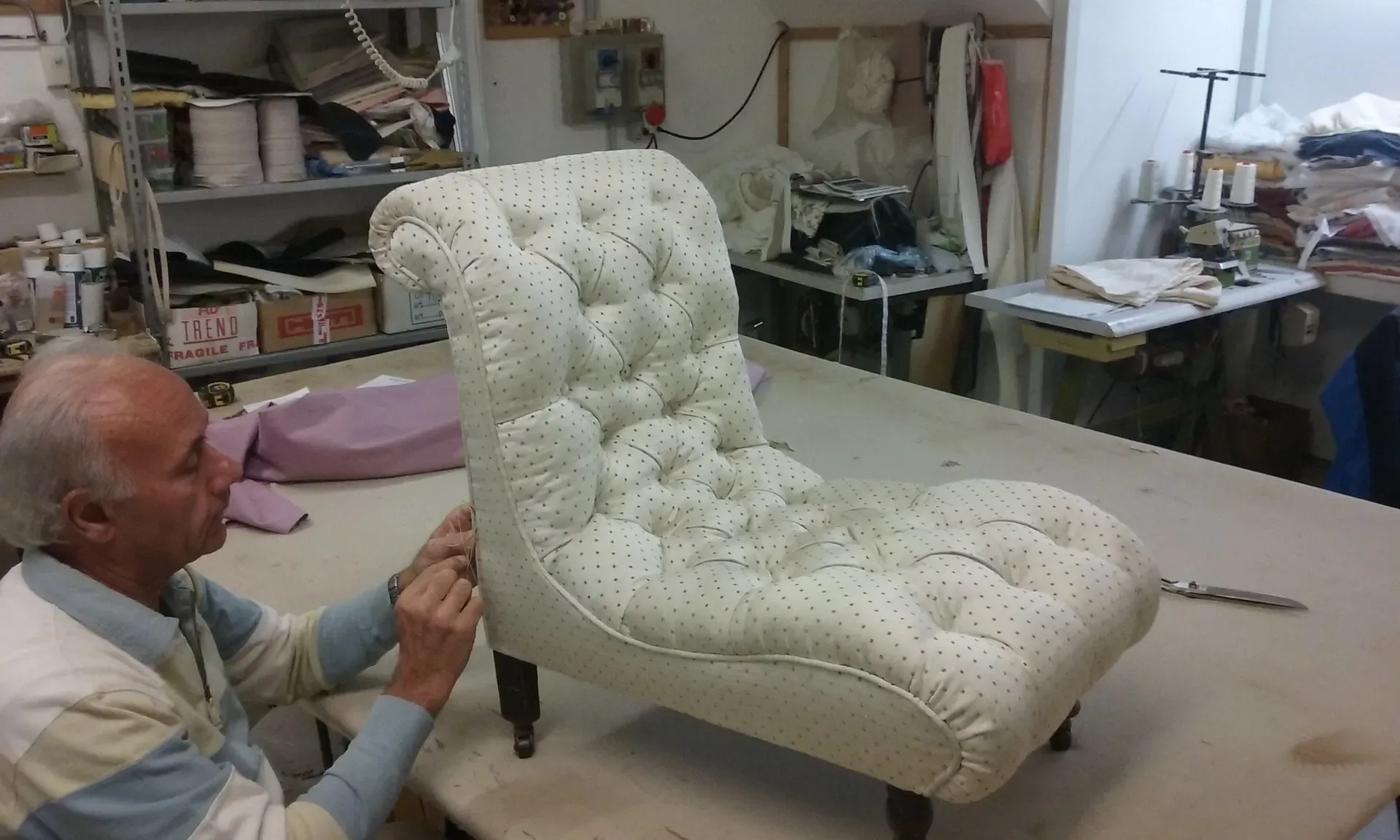 Il Tappezziere Enzo effettua lavorazioni artigianali come il restauro e il rivestimento di sedie, divani e poltrone, utilizzando imbottiture di qualità composte da vari tipi di materiali.